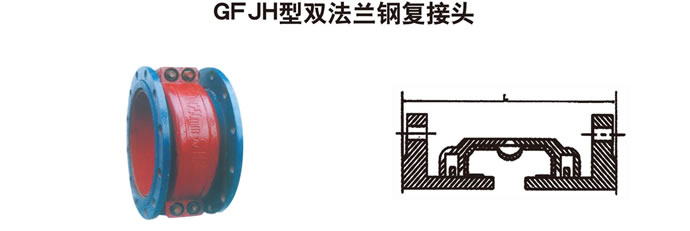 GFJH型双法兰钢复接头,具有一定的自由偏转角度.有自行伸缩补偿的功能.有良好的减震性能。自紧式密封防渗漏可靠。可广泛用于水泵、泵与泵、泵与穿墙管,阀门、循环水管道以及其他各种管道的连接,替代波纹管、伸缩器等.使运行安全可靠.安装维修方便。